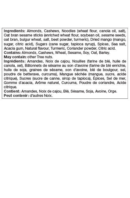 Experience a journey of bold spices with our Masala Premium Snack Mix. Inspired by the vibrant traditions of South Asia and Canada’s rich cultural tapestry, this blend of aromatic flavours brings depth, warmth, and excitement to every bite. Crafted with care, it’s a tribute to the art of spicing and a celebration of quality ingredients.